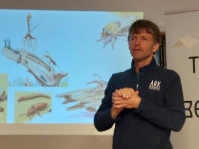 Publieksprijswinnaar Jeroen nam ons mee met zijn lezing over Wildernis in eigen land, beste Natuurboek 2025. Een kijk-, lees- en voorleesboek, geïllustreerd met prachtig ingekleurde platen, die de samenhang van allerlei planten en dieren in de natuur inzichtelijk maken. En dat slaat aan, want die platen zijn inmiddels al in veertien verschillende landen uitgebracht.
